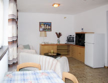Apt 2 pièces 58 m2, au rez-de-chaussée. Aménagement fonctionnel: séjour/chambre à coucher avec 2 divans-lits, table pour les repas, coin-cuisine et TV (satellite). Sortie sur le jardin. 1 chambre double. Cuisine ouverte (four, 4 feux, grille-pain, four micro-ondes, congélateur, cafetière électrique). Douche/bidet/WC. Chauffage au gaz. Jardinet. Meubles de terrasse. A disposition: lave-linge, coffre-fort, chaise haute pour enfant, lit bébé (en sus). Internet (Connexion WIFI, gratuit). Veuillez noter: logement non-fumeur. Entrée privée. Pas de frais supplémentaires obligatoires à régler sur place, sauf pour la taxe de séjour CIPAT: 022032-AT-062263- Installations