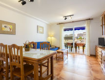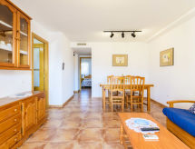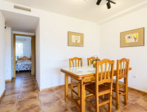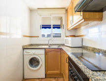 Petite résidence "Mediterranean Blau", de 3 étages, année de construction 2003. 93 appartements dans la résidence. À 400 m du centre d'Oropesa del Mar, à 200 m de la mer. En commun: jardin 2'500 m2 pelouse, piscine protégée (10 x 20 m, disponibilité saisonnière: 01.Jun. - 30.Sep.). Douche extérieure. Sentier en escalier (20 marches) jusqu'à la maison. Garage en commun. Supermarché 500 m, restaurant 100 m, gare ferroviaire "Oropesa de MAr" 450 m, plage de sable 300 m, centre thermal 1.5 km. Groupes de jeunes sur demande seulement. Environnement très sensible au bruit. Silence et bonne tenue exigés. Résidence de 93 appartements. Dans la zone de vacances de Marina d'Or (en sus) : divers restaurants, cafés pubs, centre commercial. Loisirs pour les enfants et les adolescents, Mundo Fantasia (parc pour enfants), Park Aventura, Minigolf Pirata, parc aquatique polynésien, ludothèque. Equipements sportifs : gymnase, mini golf, sports nautiques, courts de tennis, 2 terrains de foot/basket, squash, boulodrome. Service plage, Jardins exotiques. Resort Marina D'or : la station balnéaire la plus scientifique d'Europe : piscines couvertes, bain à remous, cabine de glace, bains romains, douches écossaises, solarium naturel etc...Centre médical.Interior