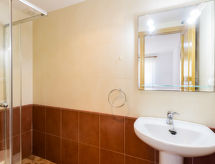 Apt 3 pièces 58 m2 au 1er étage. Aménagement confortable: séjour/salle à manger 20 m2 avec Télévision numérique, écran plat, air-conditionné et chauffage à air chaud. Sortie sur la terrasse. 1 chambre avec 2 lits (90 cm, longueur 190 cm). 1 chambre avec 1 grand-lit (150 cm, longueur 200 cm), douche/WC. Cuisine (four, 4 plaques vitrocéramiques, grille-pain, bouilloire électrique, four micro-ondes, congélateur, cafetière électrique, Capsules pour machine à café (Nespresso) (NON INCLUSES)). Douche/WC. Chauffe eau (50 litres). Terrasse 18 m2. Meubles de terrasse, chaises longues (1). Vue sur la piscine et le jardin. A disposition: lave-linge, fer à repasser, chaise haute pour enfant, lit bébé jusqu'à 2 ans, sèche-cheveux. Internet (Connexion WIFI, gratuit). Garage No 71. 1 animal/ chien de petite taille autorisé. Le lit supplémentaire fait référence au canapé/lit et convient uniquement à un enfant. AT-28299-CS- Installations