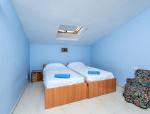 Apt 3 pièces 75 m2 sur 2 niveaux au 2ème étage. Aménagement simple et fonctionnel: séjour/salle à manger avec Télévision numérique. Sortie sur la terrasse. (lave-vaisselle, X plaques vitrocéramiques, four micro-ondes, congélateur). Douche/WC. Pas de chauffage. À l'étage supérieur: 1 chambre avec 2 lits. 1 chambre avec 1 lit double. Sortie sur la terrasse. Bain/bidet/WC. Terrasse 10 m2, couverte terrasse 6 m2. A disposition: lave-linge. Internet (Connexion WIFI). Garage No 18. 1 animal/ chien autorisé. AT-437763-A- Caractéristiques de l'hébergement