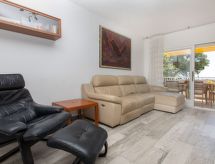 Playa de Fenals: Petite résidence moderne, accueillante, confortable "Miramar". Dans le quartier de Fenals, à 900 m du centre de Lloret, excellente situation: centrale mais tranquille, à 100 m de la mer, à 100 m de la plage. En commun: parc avec pelouse, jardin propice à la détente, piscine rectangulaire (25 x 7 m, profondeur 120 - 160 cm, disponibilité saisonnière: 15.Mai. - 30.Sep. horaires d'ouverture de la piscine: 09:00-21:00). Bassin pour les enfants, douche extérieure. Infrastructures de la Maison: ping-pong, ascenseur. Garage en commun No 21. Dimension: hauteur 250 cm largeur 470 cm. Magasin d'alimentation 200 m, supermarché 500 m, restaurant 20 m, boulangerie, arrêt du bus 300 m, plage de sable 50 m. Terrain de golf 2.5 km. Attractions à proximité: Water Worls Lloret 3 km, Marine Land Blanes 14 km, Pueblo Medieval Tossa de mar 12 km. Le propriétaire n'accepte pas les groupes. Le propriétaire n'accepte pas les groupes de jeunes. Environnement très sensible au bruit. Silence et bonne tenue exigés.Interior