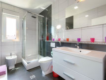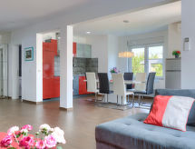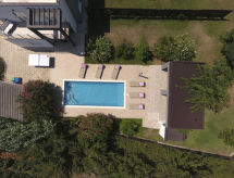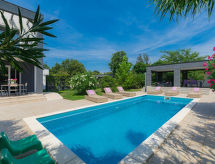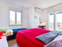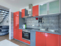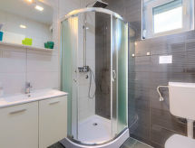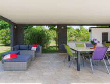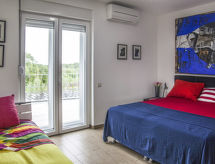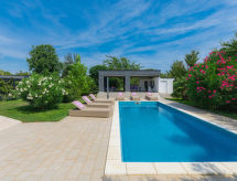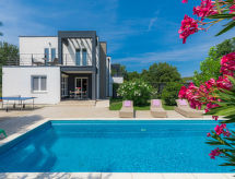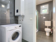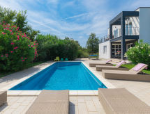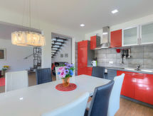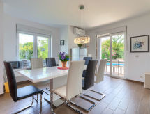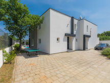 Maison jumelée moderne de 2 étages. À 2 km du centre de Medulin, à 800 m du centre de Ližnjan, à 10 km du centre de Pula, à 1.4 km de la mer, à 1.4 km de la plage. En commun: espace de jeux pour les enfants (toboggan, balançoire). A usage privé: terrain 700 m2 avec pelouse, piscine (8 x 3 m, profondeur 150 cm, disponibilité saisonnière: 01.Mai. - 01.Oct.) avec marches intérieures. Douche extérieure, ping-pong, terrasse, meubles de jardin. Infrastructures de la Maison: accès internet, système d'alarme, lave-linge. Accès en voiture jusqu'à la maison (250 m chemin non goudronné). Place de parking près de la maison. Magasins 400 m, plage de graviers 1.4 km, plage de rochers 1.4 km. Le propriétaire n'accepte pas les groupes de jeunes. Borne de recharge pour véhicule électrique (sur demande et en supplément).Interior