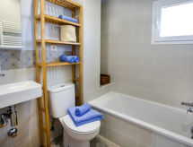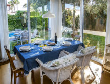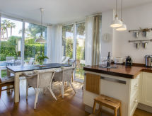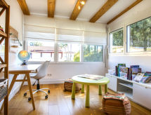 "Casa Mirlo", maison jumelée 4 pièces 130 m2 sur 2 niveaux. Spacieux et clair, aménagement très agréable et de style: séjour/salle à manger avec Télévision numérique, air-conditionné et chauffage à air chaud. Sortie sur le jardin, sur la piscine. Cuisine ouverte (3 plaques de cuisson, four, lave-vaisselle, grille-pain, four micro-ondes, congélateur, cafetière électrique, Capsules pour machine à café (Nespresso Not Incl.)). Douche/WC. À l'étage inférieur: 1 chambre avec 1 grand-lit (160 cm, longueur 190 cm), air-conditionné et chauffage à air chaud. 1 chambre avec 2 lits (90 cm, longueur 190 cm), air-conditionné et chauffage à air chaud. 1 chambre avec 1 x 2 lits superposés (80 cm, longueur 180 cm), air-conditionné et chauffage à air chaud. Bain/WC, douche/WC. Jardin, pelouse. Meubles de terrasse, chaises longues. A disposition: lave-linge, sèche-linge, fer à repasser, moustiquaire, chaise haute pour enfant, lit bébé, sèche-cheveux. Internet (Connexion WIFI, gratuit). Place de parking. Veuillez noter: TV seulement ES. VT-491587-A- Activités à proximité