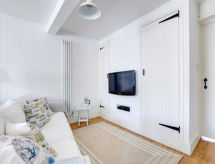 Apt 3 pièces sur 2 niveaux au 1er étage. Spacieux et clair, aménagement confortable et de bon goût: séjour ouvert avec 1 divan-lit double, TV, écran plat et DVD. 1 chambre avec 2 lits. Cuisine ouverte (4 plaques de cuisson, four, four micro-ondes, congélateur) avec table pour les repas. Bain/douche/WC. À l'étage supérieur: 1 chambre double avec 1 lit double et douche/WC. Chauffage. Belle vue sur la ville. A disposition: lave-linge, sèche-linge. Internet (Connexion WIFI, gratuit). Veuillez noter: maison non-fumeur.- Installations