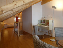 "Momento", apt 3 pièces 101 m2 sur 2 niveaux, sous le toit, situation sud. Spacieux et clair, aménagement très confortable et de bon goût: séjour/salle à manger ouvert avec baie vitrée avec Télévision numérique, chaîne stéréo et volet roulant électrique. Sortie sur le balcon. 1 chambre avec 1 lit double (180 cm, longueur 200 cm). 1 chambre avec 1 grand-lit (140 cm, longueur 200 cm). Sortie sur le balcon. Cuisine ouverte (four, lave-vaisselle, 4 plaques vitrocéramiques, congélateur, cafetière électrique, four à vapeur, appareil à raclette, service à fondue (fondue au fromage)) avec table pour les repas. Douche/WC. Chauffage par le sol. À l'étage supérieur: (escalier raide) galerie mansardée, ouverte, hauteur plafond 120 - 300 cm avec baie vitrée avec 1 grand-lit (160 cm, longueur 200 cm). Sol en parquet, sol en pierres naturelles. Grand balcon, situation sud. Mobilier de balcon. Superbe vue panoramique sur les montagnes et les alentours. A disposition: fer à repasser, chaise haute pour enfant, lit bébé, sèche-cheveux. Internet (Connexion WIFI, gratuit). Place de parking (couvert, 1 Voiture). Veuillez noter: adapté(e) aux familles. Logement non-fumeur. 1 animal/ chien autorisé. Détecteur de fumée, extincteur.- Installations