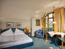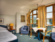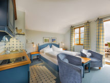 "Studio Seeblick", studio 2 pièces 25 m2. Aménagement de bon goût et romantique: 1 chambre double avec table pour les repas, TV (satellite) et radio. Coin cuisine (2 plaques de cuisson, cafetière électrique). Bains/WC ou douche/WC. Petit balcon ou petite terrasse. Belle vue sur le lac. A disposition: coffre-fort, lit bébé. Internet (Connexion WIFI, gratuit). Veuillez noter: logement non-fumeur. 1 animal/ chien autorisé.- Caractéristiques de l'hébergement