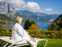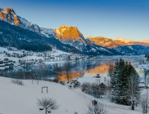 Cet appartement, situé au coeur de la région autrichienne de Salzkammergut sur un colline, vous fait déjà rêver. Vous aurez une vue à couper le souffle sur le village de Grundlsee et sur les magnifiques paysages de montagnes. Le complex hôtelier possède en lui-même un style très typique de la région et se compose de plusieurs maisons individuelles, d'un bâtiment principal avec récéption, d'un espace bien-être et de 2 restaurants avec terrasse au bord du lac. Complexe de vacances confortable "MONDI Appartements am Grundlsee". Situation tranquille, ensoleillée. En commun: jardin naturel, pré, piscine couverte (12 x 5 m, disponibilité saisonnière: 01.Jan. - 31.Dec.) avec marches intérieures. Infrastructures de la résidence: réception, restaurant, Connexion WIFI, sauna, massage (en sus). Bains de vapeur (hammam), sauna à infra-rouge, salle de relaxation, terrasse ensoleillée, chauffage central, location de bicyclettes. A disposition: bateau (en sus). Petit-déjeuner possible sur demande (en sus). Place de parking (couvert, nombre de places limité, en sus) près de la maison. Places de parking centrales. Centre à 8 minutes à pieds, centre thermal 6 km, baignade en lac 100 m. Terrain de golf 5 km, tennis, centre équestre, téléski 700 m, location de ski 6 km. Ski de fond 6 km. Attractions à proximité: Tressensteinwarte 4 km, Salzbergwerk Altaussee 11 km, UNESCO Welterbe Hallstatt 28 km, Dachstein Rieseneishöhle Obertraun 34 km. Les domaines skiables de renommée sont facilement accessibles: Loser 11 km, Dachstein - Krippenstein 19 km, Tauplitz 15 km. Les lacs connus sont facilement accessibles: Toplitzsee, Altausseer See 8 km. Région de randonnées: Tressenstein 4 km, Zimitzalm 5 km. Veuillez noter: complexe de vacances sans voiture. Possibilité de pêche (autorisation nécessaire).Interior