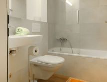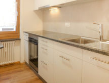 Apt 2 pièces au 1er étage. Spacieux et clair, partiellement rénové en 2021, aménagement agréable et plaisant: séjour/salle à manger avec coin repas et TV. Sortie sur le balcon. 1 chambre double avec 1 lit double (2 x 100 cm, longueur 200 cm). Cuisine ouverte (four, lave-vaisselle, 4 plaques vitrocéramiques, grille-pain, bouilloire électrique, congélateur, cafetière électrique, service à fondue (fondue au fromage)). Bain/WC. Grand balcon. Vue sur les montagnes. A disposition: sèche-cheveux. Internet (Connexion WIFI). Veuillez noter: logement non-fumeur.- Installations