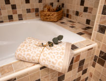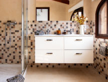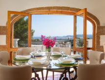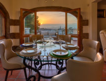 "Villa Monte Feliz", villa 4 pièces 280 m2. Spacieux, aménagement très agréable et de style: séjour/salle à manger avec TV (satellite), Télévision numérique, air-conditionné, ventilateur et chauffage à air chaud. Sortie sur la terrasse. Grande cuisine (four, lave-vaisselle, 4 plaques à induction, grille-pain, bouilloire électrique, four micro-ondes, congélateur, cafetière électrique). À l'étage supérieur: 1 chambre avec 1 grand-lit (160 cm, longueur 200 cm), air-conditionné. 1 chambre avec 1 lit (90 cm, longueur 200 cm), air-conditionné. Douche/WC. 2ème étage: 1 chambre avec Dressing avec 1 grand-lit (160 cm, longueur 200 cm), douche/WC, double vasque, air-conditionné et chauffage à air chaud. 1 chambre avec 1 grand-lit (160 cm, longueur 200 cm), douche/WC. Meubles de terrasse, barbecue, chaises longues (6). Vue sur la mer et la vallée. A disposition: lave-linge, sèche-linge, fer à repasser, chaise haute pour enfant, lit bébé. Internet (Connexion WIFI, gratuit). Place de parking, garage. Adapté(e) aux familles. VT-487021-A- Installations