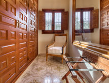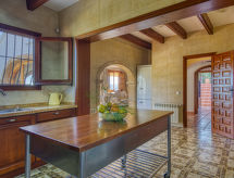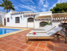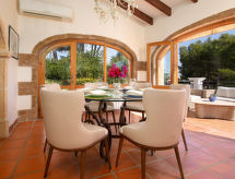 Belle villa confortable "Monte Feliz". Dans la localité, à 1 km du centre de Javea, à 3 km de la mer, à 3 km de la plage. A usage privé: grand jardin sur plusieurs niveaux plantes et arbres, verger, piscine (7 x 5 m, profondeur 110 - 210 cm, disponibilité saisonnière: 01.Jan. - 31.Dec.) avec marches intérieures. Douche extérieure, meubles de jardin, barbecue, place de parking (couvert), garage individuel. Magasins 700 m, supermarché 800 m, restaurant 1 km, bar 900 m, plage de sable "El Arenal" 4 km, plage de galets "Playa de la Grava" 3 km. Port plaisance 3 km, ecole de surf 3 km, ecole de voile 3 km, tennis 3 km. Le propriétaire n'accepte pas les groupes de jeunes.Interior