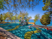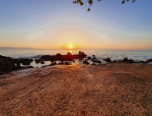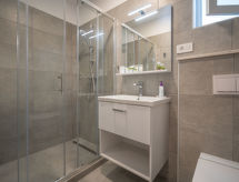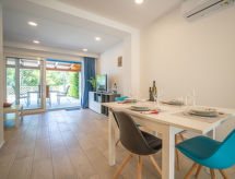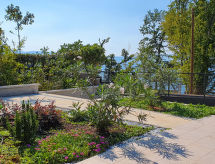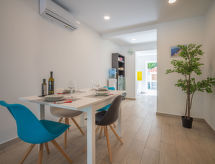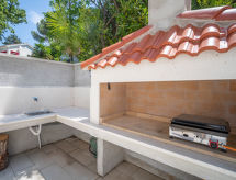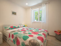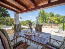 Maison 3 pièces 85 m2, situation sud. Aménagement plaisant: séjour/salle à manger 25 m2 avec TV (écran plat), air-conditionné. Sortie sur la terrasse. 1 chambre 10 m2 avec 1 grand-lit (160 cm, longueur 200 cm). 1 chambre 10 m2 avec 1 grand-lit (140 cm, longueur 200 cm). Cuisine ouverte (lave-vaisselle, 4 plaques vitrocéramiques, bouilloire électrique, four micro-ondes, congélateur, cafetière électrique). Sortie sur la terrasse. Douche/WC. Chauffage par le sol (en sus). Terrasse 45 m2 partiellement couverte, terrasse 40 m2. Meubles de terrasse. Vue partielle sur la mer. A disposition: sèche-cheveux. Internet (Connexion WIFI, gratuit). 1 animal/ chien autorisé.- Installations