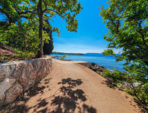 Belle maison individuelle "Natali", rénovée en 2020. À 1.5 km du centre de Njivice, situation tranquille, ensoleillée, à 20 m de la mer, à 20 m de la plage, dans la verdure. A usage privé: terrain 400 m2 (clôturé), plantes. Douche extérieure, barbecue. Infrastructures de la Maison: accès internet. Place de parking près de la maison sur le terrain. Magasins 1.5 km, supermarché 3.5 km, restaurant 1.5 km, plage de graviers, plage de rochers 20 m, plage aménagée 200 m. Veuillez noter: 1 er étage est fermé et inoccupé.Interior