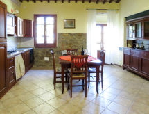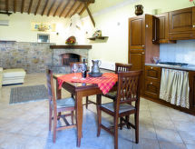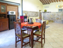 Ancienne ferme rustique, simple "Casolare il Salice", 275 m au dessus du niveau de la mer, de 2 étages, environnée par les prés et champs. Dans la localité, à 200 m du centre de Nibbiaia, à 13 km du centre de Castiglioncello, à 20 km du centre de Livorno, situation isolée, tranquille sur une colline, à 6 km de la mer. En commun: terrain 6'000 m2 (clôturé), arbres, champ, piscine (11 x 6 m, disponibilité saisonnière: 24.Avr. - 15.Oct.). Terrasse, meubles de jardin, barbecue, entretien de la piscine par le propriétaire/jardinier. Infrastructures de la Maison: restaurant, bar, Connexion WIFI. Place de parking sur le terrain. Magasins, supermarché 200 m, gare ferroviaire "Quercianella" 7 km, plage de sable "Castiglioncello" 12 km plage de graviers "Quercianella" 6 km. Attractions à proximité: Livorno 23 km, Pisa 38 km, Firenze 100 km. Veuillez noter: le propriétaire habite sur le même terrain.Interior