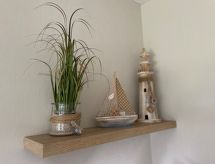 "Niki", apt 3 pièces 60 m2, au rez-de-chaussée. Aménagement confortable et de bon goût: séjour/salle à manger 20 m2 avec TV (câblée) (écran plat), lecteur CD. Sortie sur la terrasse. Chambre avec passage 9 m2 avec 1 lit double (2 x 80 cm, longueur 200 cm). 1 chambre 5 m2 avec 1 lit (80 cm, longueur 200 cm), 1 x 2 lits superposés (80 cm, longueur 200 cm). Cuisine 3 m2 (lave-vaisselle, 4 plaques vitrocéramiques, grille-pain, bouilloire électrique, four micro-ondes, cafetière électrique, Capsules pour machine à café (Senseo) (NON INCLUSES)). Douche/WC. Meubles de terrasse, réduit. A disposition: chaise haute pour enfant (en sus). Internet (Connexion WIFI, gratuit). Veuillez noter: logement non-fumeur.- Installations