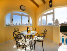 Belle villa confortable "Nina Rose", de 2 étages. À 2 km du centre de Calpe, situation ensoleillée quartier résidentiel, à 1 km de la mer, à 1.2 km de la plage. A usage privé: terrain (clôturé), piscine (8 x 4 m, profondeur 60 - 170 cm, disponibilité saisonnière: 01.Jan. - 31.Dec.). Douche extérieure, barbecue. Infrastructures de la Maison: Connexion WIFI, blanchisserie. Place de parking sur le terrain. Magasins, magasin d'alimentation, supermarché 500 m, centre commercial 2 km, restaurant, bar 350 m, gare ferroviaire 3.8 km, plage de sable "Playa Arenal" 1.1 km. Port plaisance 2.4 km, marina 2.4 km, terrain de golf (9 trous) 12 km, ecole de surf 2.1 km, ecole de voile 2.4 km, tennis 2.3 km, chemins de randonnées pédestres depuis la maison 450 m. Attractions à proximité: Aqualandia, Mundomar, Terra Mítica, Terra Natura, Benidorm Palace (Benidorm), Guadalest 32.5 km, Fuentes del Algar 23.3 km. Région de randonnées: Parque Natural Peñón d'Ifach. 2.2 km, Paseo ecológico Calpe - Benissa 3.5 km, Sierra d'Olta 6.3 km.Interior