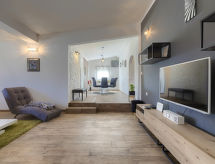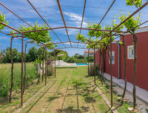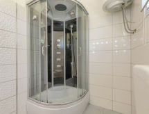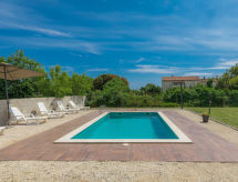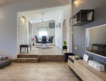 Šišan à 4 km de Medulin: Maison individuelle "Alma". À 900 m du centre de Šišan, à 8 km du centre de Pula, situation tranquille, ensoleillée, à 2 km de la mer, à 2 km de la plage. A usage privé: terrain 1'500 m2 (clôturé), jardin avec pelouse, piscine rectangulaire (6 x 4 m, profondeur 150 cm, disponibilité saisonnière: 27.Avr. - 28.Sep.). Douche extérieure, terrasse (20 m2), meubles de jardin, barbecue, espace de jeux pour les enfants (balançoire). Infrastructures de la Maison: accès internet, lave-linge. Accès en voiture jusqu'à la maison (100 m chemin non goudronné). Place de parking (pour 3 voitures) près de la maison sur le terrain. Magasins 800 m, supermarché 6 km, restaurant 650 m, plage de graviers 2 km, plage de rochers 2 km. Ecole de surf 4 km, ecole de voile 4 km, tennis 6 km, centre équestre 1 km, chemins de randonnées pédestres depuis la maison 100 m, piste cyclable 150 m. A disposition: scooter jet ski (sur demande, en sus).Interior