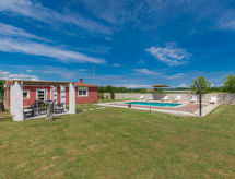 Maison 4 pièces 120 m2. Aménagement agréable: séjour/salle à manger 42 m2 avec TV (câblée) et chaînes de TV internationales (écran plat), air-conditionné. Sortie sur le jardin, sur la piscine. 2 chambres, chaque chambre avec: 1 grand-lit (180 cm, longueur 200 cm), TV (câblée) et chaînes de TV internationales (écran plat), air-conditionné. 1 chambre avec 1 grand-lit (180 cm, longueur 200 cm), douche/WC, TV (câblée) et chaînes de TV internationales (écran plat), air-conditionné. Cuisine ouverte (four, lave-vaisselle, 4 plaques vitrocéramiques, four micro-ondes, congélateur, cafetière électrique). Douche/WC. Chaises longues. Vue sur la piscine. A disposition: lit bébé, sèche-cheveux. Internet (Connexion WIFI, gratuit).- Installations
