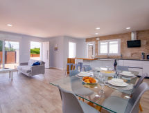 Belle maison accueillante "Nueva Playa", rénovée en 2021. Dans le quartier de La Playa des Deveses, dans la localité, à 5 km du centre d'Els Poblets en-dehors de la localité, à 11 km du centre de Dénia, à 170 m de la mer, à 170 m de la plage, accès direct à la plage. En commun: jardin entretenu avec pelouse et plantes, piscine (20 x 10 m, profondeur 110 - 180 cm, disponibilité saisonnière: 01.Jan. - 31.Dec. horaires d'ouverture de la piscine: 10:00-15:00 et 17:00-22:00). Bassin pour les enfants, douche extérieure. A usage privé: terrasse, meubles de jardin, place de parking près de la maison. Magasin d'alimentation 100 m, supermarché 200 m, restaurant, bar 10 m, arrêt du bus 200 m, plage de sable 170 m. Terrain de golf (18 trous) 4 km. Le propriétaire n'accepte pas les groupes de jeunes.Interior