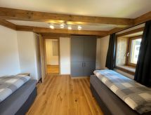 "Haus Nussbaum", maison 4 pièces 100 m2 sur 2 niveaux. Spacieux et clair, aménagement confortable et moderne: entrée avec WC séparés. Séjour/salle à manger avec poêle suédois, table pour les repas, TV (satellite), chaînes de TV internationales et écran plat. Sortie sur la terrasse. Cuisine ouverte (four, lave-vaisselle, 4 plaques vitrocéramiques, grille-pain, bouilloire électrique, cafetière électrique) avec bar. À l'étage supérieur: 1 chambre double. 1 chambre avec 2 lits. 1 chambre avec 1 divan-lit et 1 lit double. 2 douches/WC. Sol en bois, sol en pierres naturelles. Grande terrasse 20 m2. Meubles de terrasse. A disposition: fer à repasser. Internet (Connexion WIFI, gratuit). Place de parking, garage sur le terrain. Veuillez noter: logement non-fumeur. 1 animal/ chien autorisé. Extincteur. 50616-001354-2021- Installations