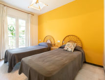 "olivar", maison mitoyenne 3 pièces 120 m2 sur 2 niveaux, situation ouest. Logement idéal pour 6 adultes. Aménagement simple et fonctionnel: séjour/salle à manger avec Télévision numérique. Sortie sur le jardinet, orientée ouest. Cuisine/séjour (four, lave-vaisselle, four micro-ondes, congélateur, cafetière électrique). WC séparé. À l'étage supérieur: 1 chambre avec 1 lit (150 cm, longueur 190 cm), bain/WC. 1 chambre avec 2 lits (90 cm, longueur 180 cm). 1 chambre avec 2 lits (90 cm, longueur 180 cm). Terrasse. Meubles de terrasse. Très belle vue sur le jardin. A disposition: lave-linge, fer à repasser, lit bébé (en sus), sèche-cheveux. Internet (Connexion WIFI, gratuit). Place de parking près de la maison. Veuillez noter: adapté(e) aux familles. 1 animal/ chien autorisé. TV seulement ES. R000000001- Installations
