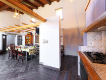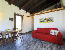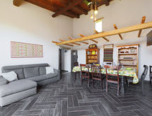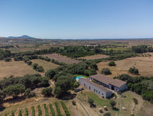 Beau, grand cottage "Oliviola", environné par les prés et champs. Location composée d'un bâtiment principal et d'une annexe, à 7 km du centre de Valledoria, à 22 km du centre de Castelsardo, à 52 km du centre de Sassari, situation isolée, ensoleillée, à 7 km de la mer, à 150 m de la rivière, au pied Coghinas, dans la verdure. A usage privé: grand jardin avec plantes et arbres, champ, cour, piscine (10 x 5 m, profondeur 150 cm, disponibilité saisonnière: 15.Avr. - 15.Oct.). Terrasse, meubles de jardin. Accès en voiture jusqu'à la maison par un chemin difficile de 300 m de long (chemin non goudronné). Place de parking (pour 4 voitures) sur le terrain. Magasins 2 km, supermarché 2 km, restaurant 2 km, bar 2 km, ferry-boat "Porto Torres" 51 km, plage de sable "Baia delle Mimose" 7 km. Veuillez noter: voiture recommandée. Animaux dans le voisinage.Interior