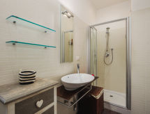 "Ondina", apt 3 pièces 90 m2, au rez-de-chaussée. Aménagement moderne et de style: grand séjour avec TV (écran plat). 2 grandes chambres doubles. Grande cuisine (5 plaques de cuisson, four, lave-vaisselle, grille-pain, four micro-ondes, congélateur) avec table pour les repas. Sortie sur la loggia. 2 douches/bidet/WC. Chauffage au gaz, air-conditionné. Possibilité de chauffage uniquement du 01.11. au 15.04. Sol en parquet. A disposition: lave-linge, fer à repasser, lit bébé (en sus), sèche-cheveux. Internet (Connexion WIFI, gratuit). Veuillez noter: adapté(e) aux familles logement côté rue. Maison non-fumeur.- Installations