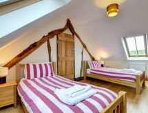 4 pièces cottage sur 3 niveaux. Spacieux et clair, aménagement confortable et de bon goût: séjour ouvert avec TV, écran plat, DVD et poêle à bois. Cuisine ouverte (4 plaques de cuisson, four, lave-vaisselle, four micro-ondes, congélateur) avec table pour les repas. Chauffage. À l'étage inférieur: 1 chambre double. Sortie sur le jardinet. À l'étage supérieur: 1 chambre double avec 1 lit double. Sortie sur le balcon. 1 chambre avec 2 lits. Galerie avec 2 lits doubles. Bain/douche/WC. Chauffage. Jardinet. Meubles de terrasse. Belle vue sur les alentours. A disposition: lave-linge. Internet (Connexion WIFI, gratuit). Veuillez noter: maison non-fumeur.- Caractéristiques de l'hébergement