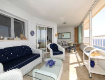 "Orellana", apt 3 pièces 89 m2 au 12ème étage. Logement idéal pour 2 adultes + 1 enfant. Spacieux et clair, aménagement confortable et agréable: séjour/salle à manger ouvert avec TV (satellite), Télévision numérique, air-conditionné et chauffage à air chaud. Sortie sur la terrasse. 1 chambre avec 1 grand-lit (1 x 160 cm, longueur 200 cm), air-conditionné et chauffage à air chaud. 1 chambre avec 1 lit (90 cm, longueur 200 cm), air-conditionné et chauffage à air chaud. Cuisine (lave-vaisselle, 3 plaques vitrocéramiques, grille-pain, bouilloire électrique, four micro-ondes, cafetière électrique). Bain/douche/bidet/WC. Grande terrasse. Meubles de terrasse. Vue panoramique sur la mer et le cité. A disposition: lave-linge, fer à repasser, chaise haute pour enfant, lit bébé jusqu'à 2 ans, sèche-cheveux. Internet (Connexion WIFI, gratuit). Place de parking No 2 (couvert). 1 animal/ chien de petite taille autorisé. VT-488091-A- Caractéristiques de l'hébergement