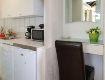 "Karin (LOV301)", maison 2 pièces 50 m2 sur 2 niveaux. Séjour/salle à manger avec 1 divan-lit double (160 cm, longueur 200 cm), TV (satellite) (écran plat). Sortie sur la terrasse. Cuisine (2 plaques de cuisson, lave-vaisselle, grille-pain, bouilloire électrique, four micro-ondes, cafetière électrique). Douche/WC. À l'étage supérieur: entrée avec air-conditionné. 1 chambre avec 1 lit (90 cm, longueur 190 cm), 1 grand-lit (160 cm, longueur 200 cm). Air-conditionné (en sus). Terrasse 10 m2. Meubles de terrasse, chaises longues (2). A disposition: Internet (Connexion WIFI, gratuit). Veuillez noter: maison non-fumeur.- Installations