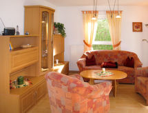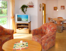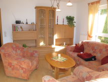 Petite résidence "Ostseetrio", de 3 étages. 3 maisons dans la résidence. 6 appartements dans la même entité. À 1 km du centre de Zinnowitz, à 10 km du centre de Wolgast, à 38 km du centre de Greifswald, dans un quartier résidentiel, à 1 km de la mer, dans une impasse. En commun: terrain 1'000 m2, jardin entretenu avec pelouse et plantes. Infrastructures de la Maison: réduit pour bicyclettes. Supermarché 400 m, restaurant 200 m, plage de sable 1 km, piscine couverte 1.3 km.Interior