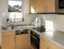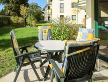 Apt 2 pièces 60 m2, au rez-de-chaussée. Clair, aménagement de bon goût et plaisant: séjour/chambre à coucher avec 1 divan-lit double (160 cm, longueur 200 cm), table pour les repas, TV (satellite) et radio. Sortie sur la terrasse. 1 chambre double. Cuisine (four, lave-vaisselle, 4 plaques vitrocéramiques, grille-pain, bouilloire électrique, four micro-ondes, cafetière électrique). Sortie sur la terrasse. Douche/WC. Chauffage au gaz. Terrasse 8 m2 partiellement couverte. Meubles de terrasse. A disposition: chaise haute pour enfant, lit bébé. Internet (Connexion WIFI, gratuit). Place de parking (1 Voiture). Veuillez noter: logement non-fumeur. Détecteur de fumée.- Installations