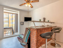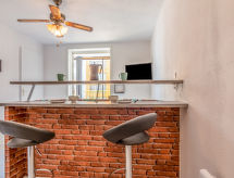 Résidence "Palm Beach", de 3 étages. 300 appartements dans la résidence. Dans le quartier de La Grande Plage, à 50 m de la mer, à 50 m de la plage. Parking public 150 m. Magasins, magasin d'alimentation, centre commercial, restaurant, bar, café, location de bicyclettes 150 m, gare ferroviaire "de la Franqui" 18 km. Attractions à proximité: Aqualand Port Leucate 7 km, Réserve Africaine de Sigean 41 km, site des dosses 4 km, téléski nautique 5 km. Les lacs connus sont facilement accessibles: Etang de Leucate ou salses 11 km, Lac de Villeneuve de la Raho 28 km. Région de randonnées: Sentier du guetteur 8 km, la forteresse de salses 15 km, Sentier du littoral Collioure 40 km. Veuillez noter: sans ascenseur. D’autres appartements sont également proposés à la location dans cette maison de vacances.Interior