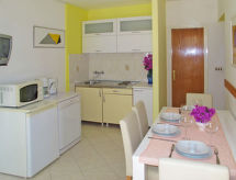 "Palma (RAC108)", apt 2 pièces 40 m2, au rez-de-chaussée. Entrée avec air-conditionné. 1 chambre avec 2 lits. 1 chambre avec 1 lit double. Cuisine (2 plaques de cuisson, lave-vaisselle, grille-pain, bouilloire électrique, four micro-ondes, cafetière électrique) avec table pour les repas, TV (satellite). Sortie sur le balcon. Bain/bidet/WC. Balcon 8 m2. Mobilier de balcon, barbecue (portable). Vue sur la mer. A disposition: Internet (Connexion WIFI, gratuit). Veuillez noter: maison non-fumeur.- Installations
