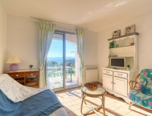Maison mitoyenne 3 pièces 40 m2 sur 2 niveaux. Séjour/salle à manger avec 1 divan-lit double (1 x 130 cm, longueur 190 cm). Sortie sur la terrasse. Coin cuisine (mini-four, 2 plaques à induction, bouilloire électrique, four micro-ondes, congélateur, cafetière électrique). WC séparé. À l'étage supérieur: 1 chambre avec 1 grand-lit (1 x 140 cm, longueur 190 cm). 1 chambre avec 1 lit (90 cm, longueur 190 cm). Salle de bains. Chauffage électrique. Terrasse 16 m2 partiellement couverte, situation sud et situation ouest, jardinet 60 m2. Meubles de terrasse. Très belle vue sur la mer. A disposition: lave-linge, fer à repasser, sèche-cheveux. Internet (Connexion WIFI, en sus). Place de parking No 209. Veuillez noter: maison non-fumeur. TV seulement FR. Détecteur de fumée. A noter: maison accessible par 27 marches.- Installations