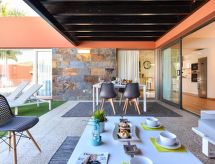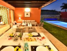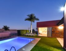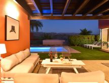 Belle villa, moderne "Par 4 Villa 19 with Pool Salobre". Infrastructures de la maison: air-conditionné, lave-linge (à usage privé). Accès et parking: parking réservé. Accès en voiture pendant toute l'année. Position: au centre de Salobre Golf Resort, en-dehors de Maspalomas, en position isolée, tranquille, ensoleillée sur une colline. Vue de la maison sur les alentours. Alentours de la maison: jardin (à usage privé), piscine (à usage privé, longueur 8 m x largeur 4 m), gril/barbecue (à usage privé). Chauffage de la piscine: en supplément pour 50€ / nuit à payer sur place et à demander lors de la réservation.Interior