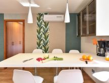 "P19", maison 5 pièces pour 6 personnes, 120 m2, confortable et moderne aménagement. Séjour/salle à manger avec TV (satellite). Non permis de fumer. Internet (Connexion WIFI). Chambre à coucher avec 1 lit double. Chambre à coucher avec 2 lits normaux. Chambre à coucher avec 2 lits normaux. Cuisine ouverte avec four à 4 plaques, four micro-ondes, four, table pour les repas, lave-vaisselle, réfrigérateur et congélateur. Salle de bains et douche/WC. Jardinet, meubles de terrasse. Autres fournitures: coffre-fort, chaise haute pour enfant, sèche-cheveux, fer à repasser, lave-linge. 2019/5809- Caractéristiques de l'hébergement