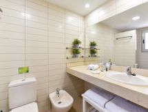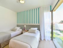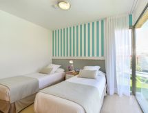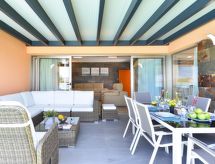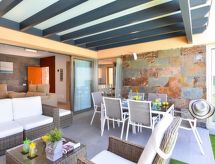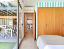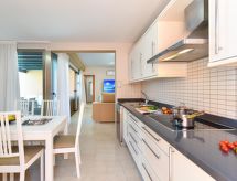 "Villa", maison 3 pièces pour 6 personnes, 90 m2, moderne et luxueux aménagement. Séjour/salle à manger avec TV régional, TV (satellite) et TV (câblée). Non permis de fumer. Internet (Connexion WIFI). 1 divan-lit double. Chambre à coucher avec 1 lit double. Chambre à coucher avec 2 lits normaux. Cuisine ouverte avec four à 4 plaques, four micro-ondes, four, table pour les repas, lave-vaisselle, réfrigérateur et congélateur. Restauration: service boulangerie (inclus). Bain/douche/WC. Jardinet, meubles de terrasse 4 chaises longues. Autres fournitures: coffre-fort, chaise haute pour enfant, sèche-cheveux, fer à repasser, lave-linge. 2016/4696- Caractéristiques de l'hébergement