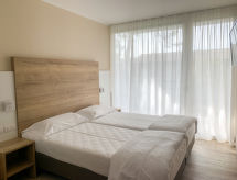 Apt 2 pièces 36 à 40 m2. Rénové en 2022, aménagement moderne: séjour/chambre à coucher avec 1 divan-lit double, table pour les repas et TV (satellite). Sortie sur le jardin, sur le balcon. 1 chambre avec 2 couchages. Cuisine ouverte (4 plaques de cuisson, four micro-ondes). Douche/bidet/WC. Chauffage (en sus), air-conditionné. Balcon ou jardinet. Meubles de terrasse, mobilier de balcon. A disposition: coffre-fort. Place de parking près de la maison. Veuillez noter: logement non-fumeur.- Installations