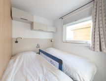 Bungalow 4 pièces 42 m2. Aménagement fonctionnel et plaisant: séjour/salle à manger ouvert avec table pour les repas et Télévision numérique. 1 chambre avec 1 lit double (160 cm, longueur 200 cm), douche/WC. 2 chambres, chaque chambre avec: 2 lits (80 cm, longueur 200 cm). Cuisine ouverte (lave-vaisselle, Poêle à gaz, grille-pain, bouilloire électrique, congélateur, cafetière électrique, combiné micro-ondes). Douche, WC séparé. Chauffage électrique. Terrasse 24 m2. Meubles de terrasse, barbecue. A disposition: chaise haute pour enfant, lit bébé jusqu'à 2 ans, sèche-cheveux. Internet (Connexion WIFI, gratuit). Place de parking (en sus). Veuillez noter: maison non-fumeur. Détecteur de fumée, extincteur.- Installations