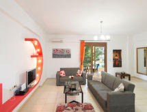 Belle villa confortable, individuelle "Pathos", année de construction 2013, environnée par les champs. Dans le quartier de Vlychada, situation tranquille, ensoleillée, à 2 km de la mer, à 2 km de la plage. A usage privé: beau jardin avec fleurs et arbres, pré, piscine à l'abri des regards (18 m2, profondeur 150 cm, disponibilité saisonnière: 01.Avr. - 31.Oct.) avec marches intérieures. Douche extérieure, barbecue. Change de linge 2 fois par semaine. Changementde linge de toilette 2 fois par semaine. Nettoyage 2 fois par semaine. Place de parking (pour 2 voitures) près de la maison. Magasin d'alimentation 2 km, supermarché 2 km, restaurant 2 km, bar 2 km, boulangerie 2 km, café 2 km, plage de sable "Bali" 2 km. Attractions à proximité: El Greco Museum 23.1 km, Monastery of Arkadi 32.5 km, Rethymnon Old Town 33.4 km, Ideon Andron (Zeus Cave) 56.8 km, Melidoni Cave 15.3 km, Museum of Ancient Eleftherna 34.1 km. Les lacs connus sont facilement accessibles: Kournas 54.6 km. Veuillez noter: voiture recommandée. Adapté(e) aux familles, équipement pour bébés sur demande (inclus). Groupes de jeunes sur demande seulement. La photo ne montre qu’un exemple de location de vacances.Interior