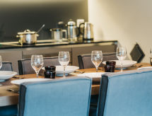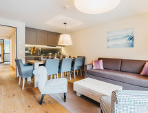 Apt 4 pièces 89 à 92 m2. Aménagement confortable et moderne: séjour/salle à manger avec 1 divan-lit (80 cm, longueur 200 cm), 1 lit rabattable (90 cm, longueur 200 cm), TV (câblée) (écran plat). 3 chambres doubles. Cuisine ouverte (four, lave-vaisselle, 4 plaques à induction, bouilloire électrique). Bain/WC, douche/WC. Balcon. Mobilier de balcon, réduit. Belle vue sur les montagnes et les alentours. A disposition: coffre-fort, sèche-cheveux. Internet (Connexion WIFI). Veuillez noter: maison non-fumeur. Maximum 1 animal/ chien autorisé.- Caractéristiques de l'hébergement