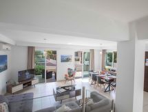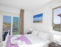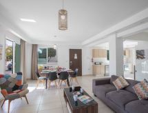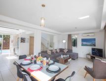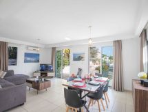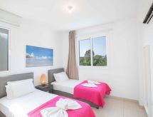 Maison individuelle, 4 pièces pour 6 personnes, 110 m2 sur 2 niveaux, confortable et moderne aménagement. Séjour/salle à manger avec TV régional, TV (satellite) et table pour les repas. Non permis de fumer. Internet (Connexion WIFI). Chambre à coucher avec 1 lit double. Chambre à coucher avec 1 lit double. Chambre à coucher avec 2 lits normaux. Cuisine/séjour avec four à 4 plaques, four micro-ondes, four, table pour les repas, lave-vaisselle et réfrigérateur. Salle de bains, douche/WC et WC séparés. Autres fournitures: coffre-fort, chaise haute pour enfant, sèche-cheveux, fer à repasser, lave-linge, sèche-linge. This beautifully kept 3 bedroom villa is spacious both inside and outside and furnished to a very high standard. Located in the Pernera area of Protaras, it is within 10 minutes walk of both Kalamies Beach and the resort centre.Inside, the villa has a very modern yet comfortable design. The living area has leather sofas, a widescreen TV with a Full UK satellite and dining table seating 6 persons. The large open plan kitchen is fully equipped with modern appliances. There is also a W/C on this floor.Upstairs, the master bedroom features a double bed and en-suite shower room. There is also access to a veranda. There are another 2 bedrooms, both with single beds .Outside the private garden has a 6 x 3 metre pool from where you can also enjoy the sea views. Sun-loungers and an umbrella are provided, along with a patio table and chairs. A built-in BBQ and sink area provide the perfect setting for outside dining and entertaining during the long summer evenings.Satellite TV and free WIFI are available and the villa has full air-conditioning.Overall this is a great villa option for families and groups of friends, looking for a luxury property within easy reach of the beach and resort centre. Bedroom 1: 1 Double Bed with en-suite bathroom / Bedroom 2: 2 Single Beds / Bedroom 3: 2 Single Beds.- Caractéristiques de l'hébergement