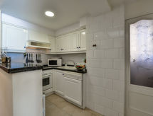 Playa Arenal: Grande petite résidence "Penon d'Ifach", de 10 étages. Dans la localité, à 300 m du centre de Calpe, dans l'arrondissement Playa Arenal-Bol, situation ensoleillée, à 30 m de la mer, à 30 m de la plage, accès direct à la plage, dans une impasse. Infrastructures de la Maison: ascenseur. Magasin d'alimentation, supermarché 180 m, restaurant, bar, café 10 m, zone piétonne 30 m, centre à 5 minutes à pieds, arrêt de bus "Plaza Colon" 400 m, plage de sable "Playa Arenal-Bol" 10 m. Port plaisance 1.7 km, marina 1.7 km, terrain de golf (9 trous) 11.5 km, ecole de surf 1.9 km, ecole de voile 1.7 km, tennis 1.3 km, centre équestre 3.8 km, centre sportif 1.1 km, chemins de randonnées pédestres depuis la maison 1.1 km. Attractions à proximité: Aqualandia, Mundomar, Terra Mítica, Terra Natura, Benidorm Palace (Benidorm), Les Fonts de l'Algar, Castillo de Guadalest. Région de randonnées: Ruta des Salines 1.1 km, Peñón d'Ifach 1.8 km, Sendero Ecológico Calalga 3 km. Veuillez noter: adapté(e) aux familles, indiqué pour séniors.Interior