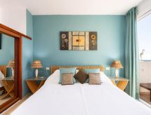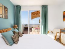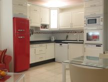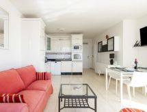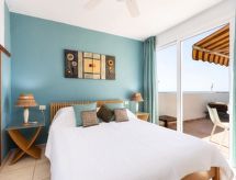Apt 2 pièces pour 2 personnes, 55 m2 au 10ème étage, moderne et plaisant aménagement. Séjour/salle à manger avec TV (satellite). Non permis de fumer. Internet (Connexion WIFI). Chambre à coucher avec 1 lit double. Cuisine ouverte avec four à 4 plaques, four micro-ondes, four, table pour les repas, lave-vaisselle, réfrigérateur et congélateur. Bain/WC. Balcon 15 m2, meubles de terrasse 2 chaises longues. Autres fournitures: fer à repasser, lave-linge. O00006501E1900040923- Caractéristiques de l'hébergement