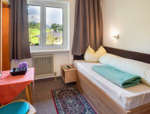 "Penz (FGZ151)", maison 14 pièces 300 m2 sur 3 niveaux. Partiellement rénovée en 2020, aménagement agréable et plaisant: grand séjour/salle à manger avec TV (satellite) et radio. Cuisine ouverte (four, lave-vaisselle, 4 plaques vitrocéramiques, bouilloire électrique, four micro-ondes, cafetière électrique). 2 WC séparés. À l'étage supérieur: 5 chambres doubles, chaque chambre avec: douche/WC, TV (satellite) et radio. 1 chambre double avec douche/WC. 1 chambre avec 1 lit et douche/WC. 2ème étage: 4 chambres doubles, chaque chambre avec: douche/WC, TV (satellite) et radio. 2 chambres, chaque chambre avec: 1 lit et lavabo. 1 chambre double avec lavabo. WC séparé. Chauffage. Moquette. 2 balcons. Réduit. A disposition: Internet (Connexion WIFI, gratuit). Veuillez noter: maison non-fumeur. Maximum 3 animaux/ chiens autorisés. Détecteur de fumée, extincteur. Si le nombre d’occupants n’atteint pas le maximum, toutes les maisons ne seront pas disponibles.- Installations