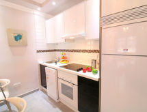 Petite résidence "Perlamar". À 500 m du centre de Calpe, situation centrale, à 100 m de la mer, à 100 m de la plage. Infrastructures de la Maison: ascenseur. Magasin d'alimentation, supermarché 600 m, restaurant, bar 10 m, plage de sable "Playa Areenal" 100 m. Attractions à proximité: Aqualandia, Mundomar, Terra Mítica, Terra Natura, Benidorm Palace (Benidorm), Castillo de Guadalest.Interior