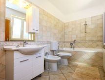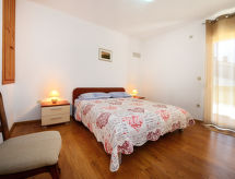 Maison 3 pièces 120 m2 sur 2 niveaux. Séjour/salle à manger avec 1 divan-lit double (160 cm, longueur 200 cm), cheminée (uniquement à titre de décoration), TV (satellite). Sortie sur la terrasse. Cuisine ouverte (four, lave-vaisselle, 4 plaques vitrocéramiques, grille-pain, bouilloire électrique, four micro-ondes, congélateur, cafetière électrique). Bain/bidet/WC. À l'étage supérieur: entrée avec air-conditionné. 1 chambre avec 1 grand-lit (160 cm, longueur 200 cm), douche/WC. Sortie sur la terrasse. 1 chambre avec 1 divan-lit et 1 grand-lit (160 cm, longueur 200 cm), douche/WC. Sortie sur la terrasse. Terrasse. Chaises longues. A disposition: lit bébé (en sus). Internet (Connexion WIFI, gratuit). Veuillez noter: maison non-fumeur. Maximum 1 animal/ chien autorisé.- Caractéristiques de l'hébergement
