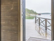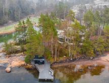 70 km au sud de Salo, Golfe de Finlande 30 m, propre plage de sable peu profonde, jetée, échelle de bain, canot à rames. Différentes tailles de gilets de sauvetage disponibles. Eaux de pêche propres 100 ha. Grande maison en pierre (marque : Lammin kivitalo) dans un bel endroit sur l'île de Kemiönsaari. La destination est entourée d'un environnement marin. Cette destination se compose d'un bâtiment principal (200 m²) et d'un sauna en bord de mer (20 m²). Au rez-de-chaussée du bâtiment principal, il y a un séjour, une cuisine, une chambre avec un lit double, une autre chambre avec un canapé convertible et un lit séparé de 90 cm, une cheminée et des WC séparés. A l'étage, chambre avec lit double, espace ouvert avec lit double et lit séparé de 90 cm de large, lit de voyage pour enfant, sauna électrique, douche. En été chaises et table pour 10 personnes sur la terrasse. Sauna en bord de mer, poêle électrique et 2 douches. Le nettoyage final de séjour et le linge de lit sont inclus dans les prix de cette destination. Destination confortable, composée de deux bâtiments, en bord de mer. Ici, vous pouvez profiter du sauna en bord de mer, de votre propre plage de sable et de votre propre paix. La cour ouverte offre des possibilités de jeux de jardin. Il existe, par exemple, un jeu de croquet en libre accès. Il y a aussi quelques engins de pêche qui peuvent être empruntés librement. Salo à 70 km, Turku à 85 km.- Installations