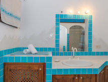 Résidence "Le Querce", de 2 étages. 21 appartements dans la résidence. À 2 km du centre de Cannigione, en bordure de la localité, à 6 km du centre d'Arzachena, à 300 m de la mer. En commun: piscine en forme d’haricot (8 x 5 m, profondeur 50 - 190 cm, disponibilité saisonnière: 01.Jun. - 30.Sep. horaires d'ouverture de la piscine: 09:00-13:30 et 16:00-20:00). Bassin pour les enfants, douche extérieure. A usage privé: jardin 150 m2 (clôturé) avec plantes et arbres, cour, place de parking près de la maison à 10 m. Supermarché 800 m, restaurant 200 m, plage de sable 300 m.Interior