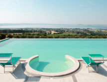 Agrotourisme "Pomele", environné par les arbres, champs et vignobles. 12 appartements dans la résidence. À 3 km du centre de San Lorenzo Nuovo, à 7 km du centre de Bolsena, à 50 km de la mer, à 3 km du lac. En commun: terrain 75 ha (clôturé), piscine (20 x 12 m, disponibilité saisonnière: 15.Mai. - 25.Sep.). Bassin pour les enfants, douche extérieure, tennis, barbecue. Infrastructures de la Maison: salon, salle fitness, lave-linge (en commun), vélo à disposition. Accès en voiture (1.7 km chemin non goudronné). Place de parking (couvert) sur le terrain. Supermarché 3 km, plage de sable "Lago di Bolsena" 5.5 km, centre thermal "Sorano" 26 km. Terrain de golf (9 trous) 10 km. Attractions à proximité: Capodimonte 21 km, Montefiascone 22 km, Marta 23 km, Pitigliano 27 km, Orvieto 27 km, Viterbo 40 km. Veuillez noter: voiture recommandée. Vente locale de produits de la ferme.Interior